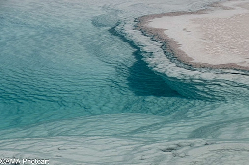 As formações naturais de Pamukkale, na Turquia, revelam superfícies quase abstratas, onde o mineral, a água e a luz constroem imagens de forte presença gráfica e silenciosa.